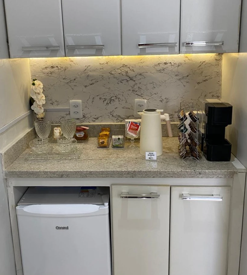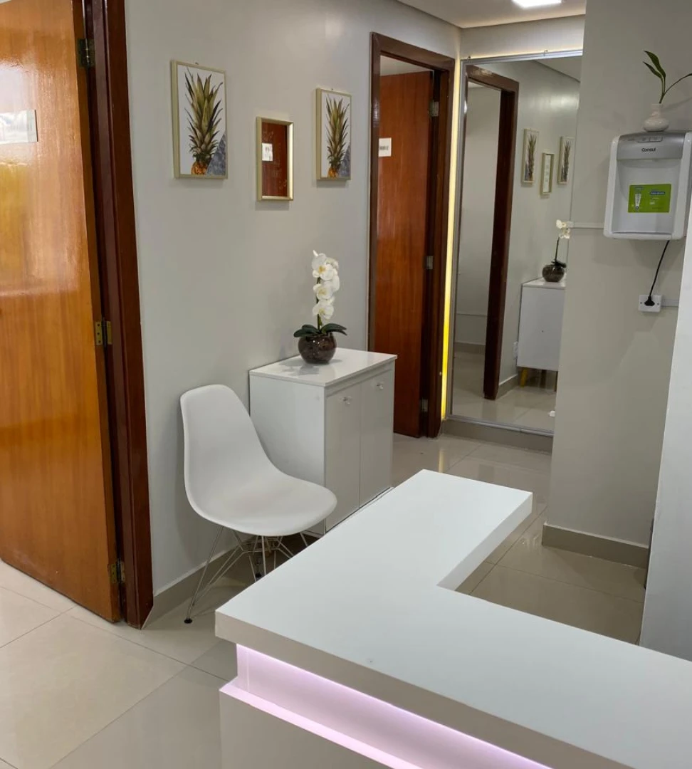 Copa com café, internet Wi-Fi rápida Sala de espera moderna, com TV (streaming) e lanches — conforto para seus pacientes desde a chegada.Localização estratégica no coração de Brasília